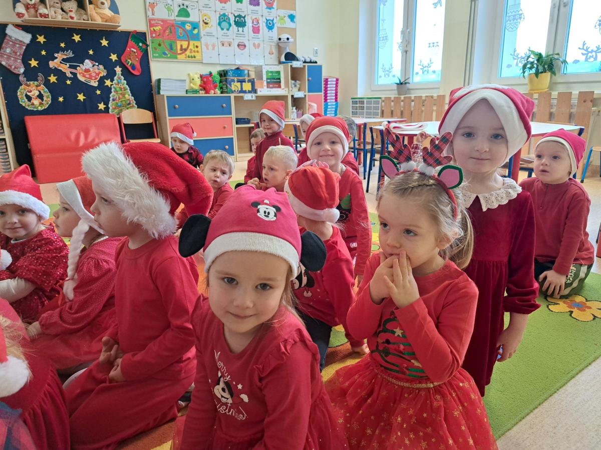 Przedszkolaki z ogromną radością śpiewały piosenki i opowiadały Mikołajowi o swoich świątecznych marzeniach. Każde Dziecko otrzymało upominek, a Mikołaj obiecał, że wróci do nas za rok! 🎁❤️